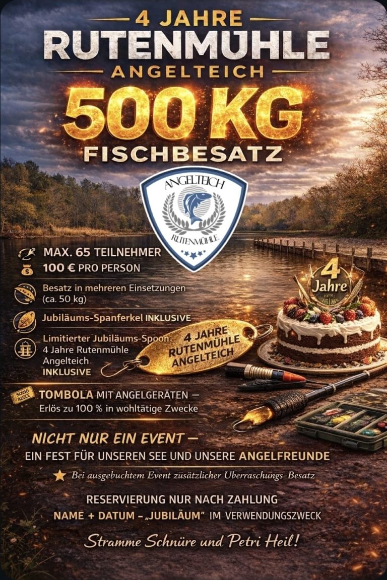 Zum 4-jährigen Jubiläum des Rutenmühle Angelteichs möchten wir etwas ganz Besonderes veranstalten.